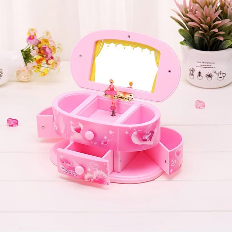Detta tillbehör innehåller också en speldosa för en liten flicka med en liten roterande figur. Vrid bara på nålen så spelar den en mjuk, lugnande melodi. Den är rosa, dekorerad med blommotiv och har en prinsessdesign. Det är en produkt som alla små flickor kommer att älska.