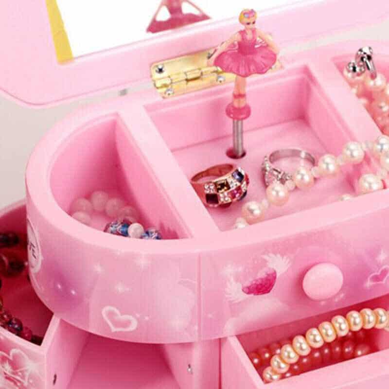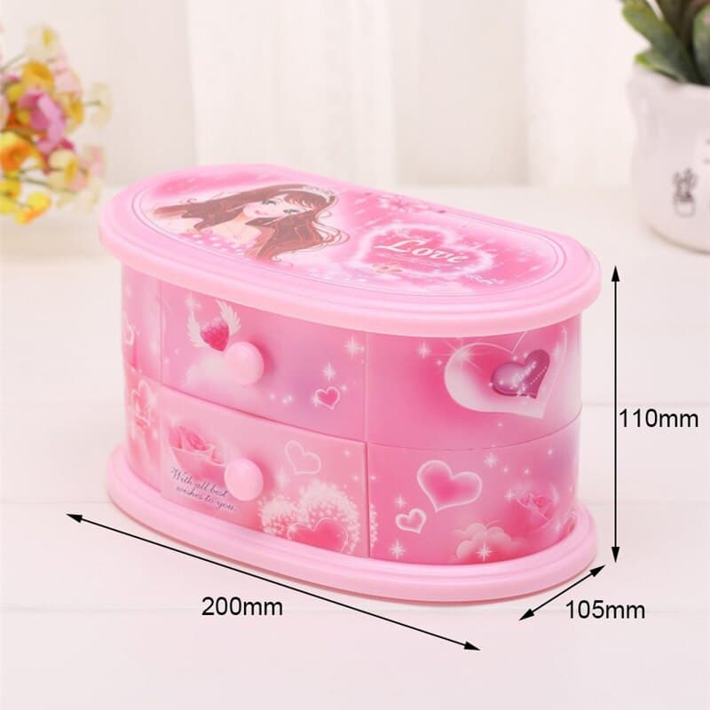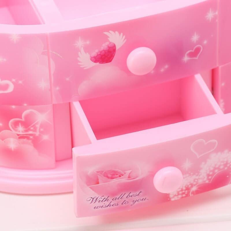 Den här boxen är tillverkad av högkvalitativt, slitstarkt plastmaterial. Lådorna har alla tillräckligt med utrymme för att förvara hennes smycken, ringar, halsband etc.