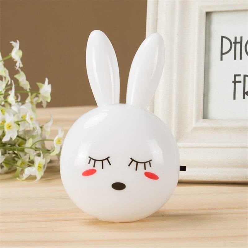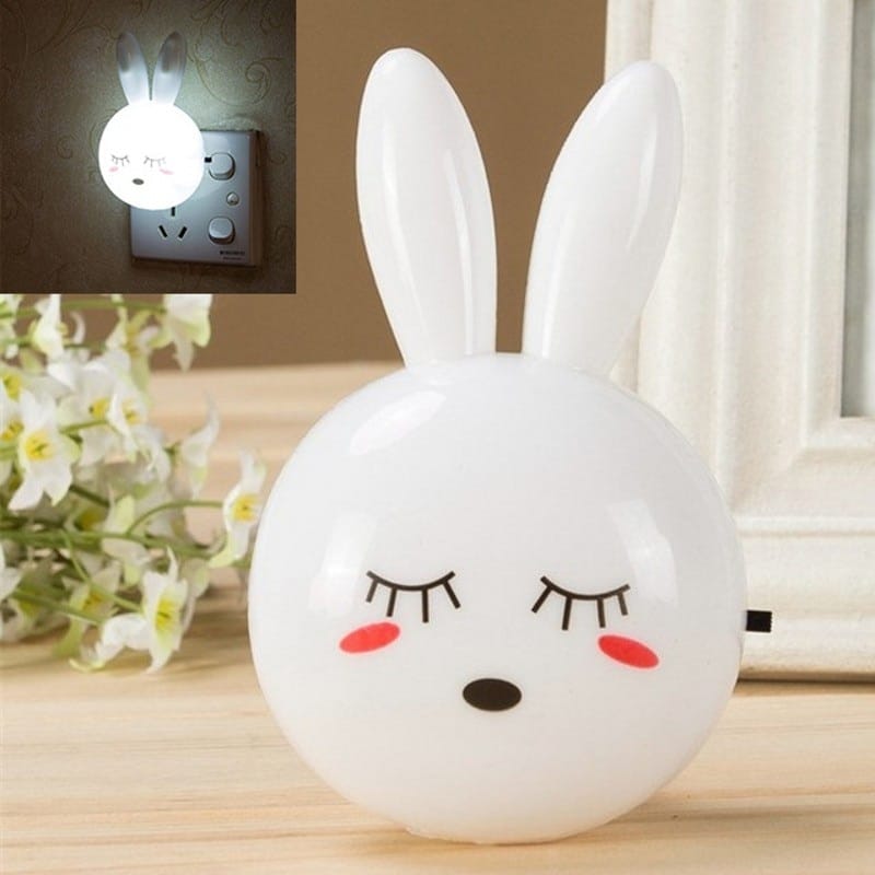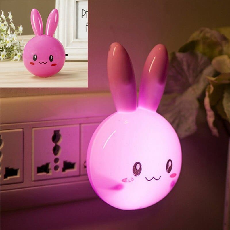 LED-vägglampa i form av en kanin för en flicka på ett bord i ett hus
