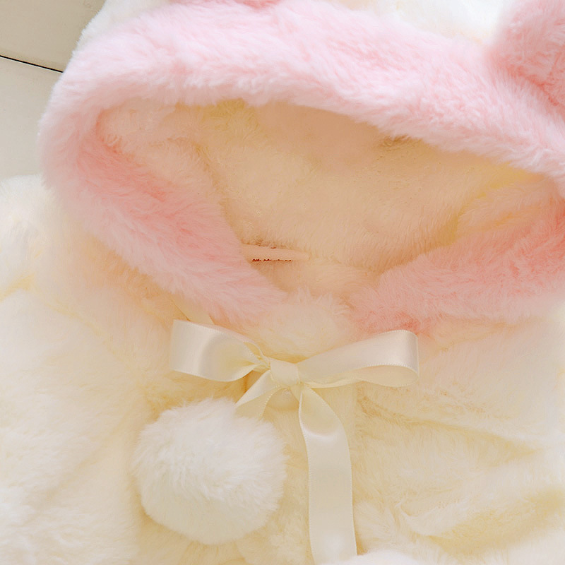 Utsvängd kappa i syntetpäls med kaninöron för babyflickor