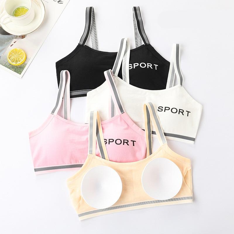 Uppsättning med 4 bekväma sportbehåar i bomull för flickor