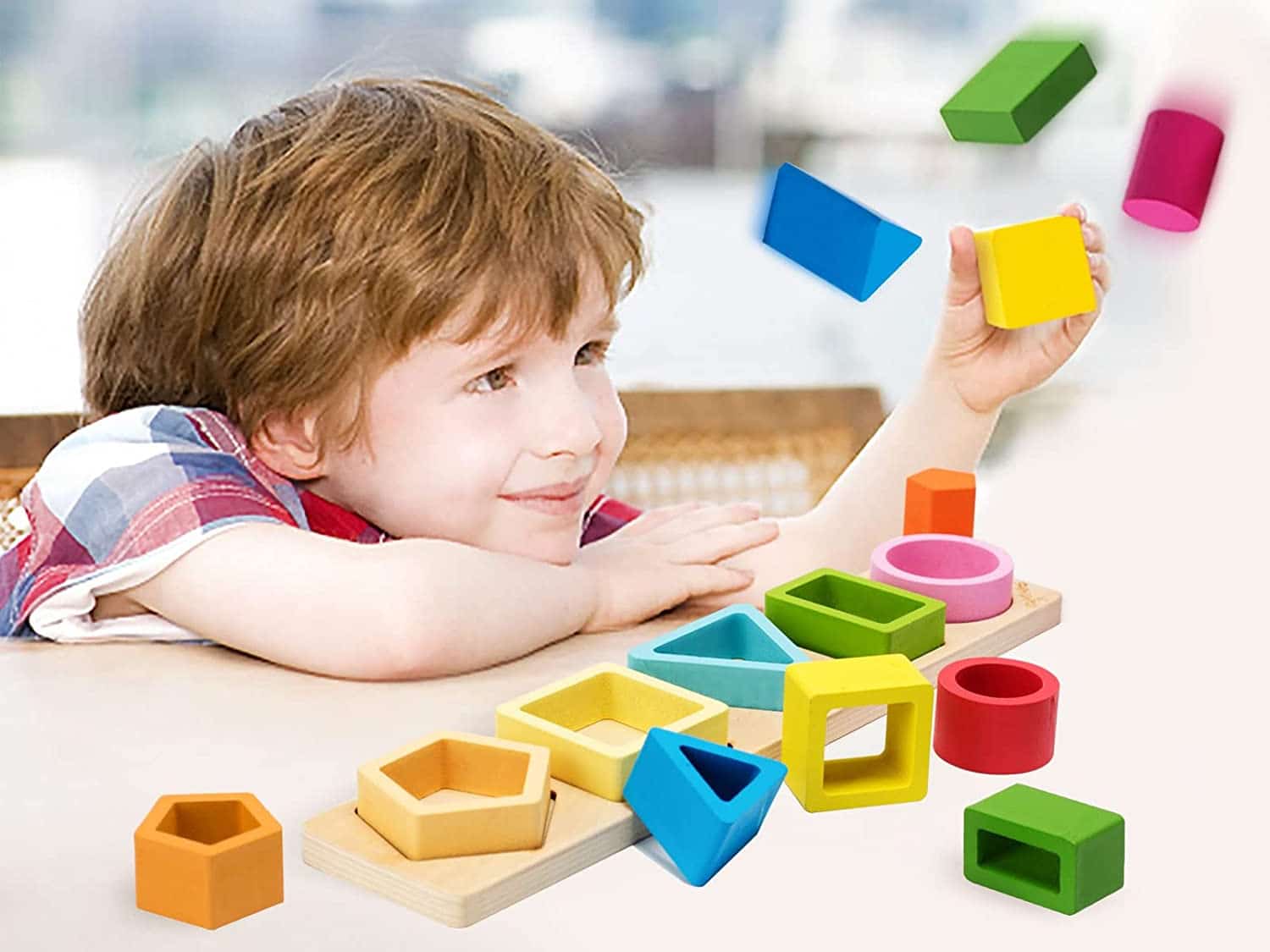 Montessori-leksaker i trä för flickor som vill lära sig färger och former