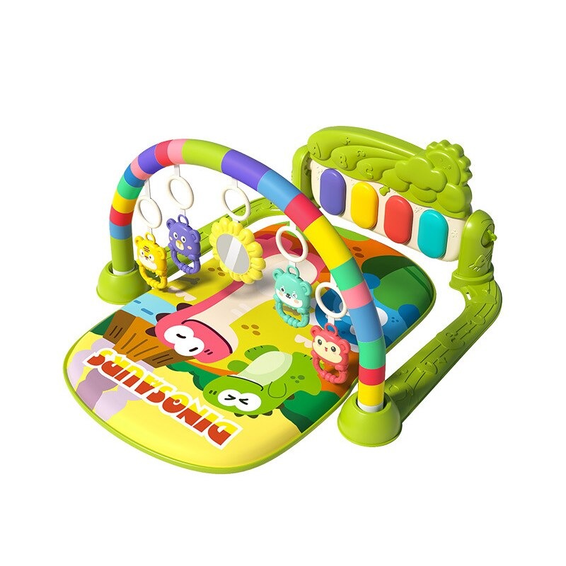 Denna dinosauriemönstrade musikaliska lekmatta för spädbarn är en innovativ och attraktiv produkt som erbjuder en mängd möjligheter till lärande och underhållning för ditt lilla barn. Barnet kan leka med ljud, texturer och färger från de olika elementen som utgör denna lekmatta, antingen på magen eller på ryggen.