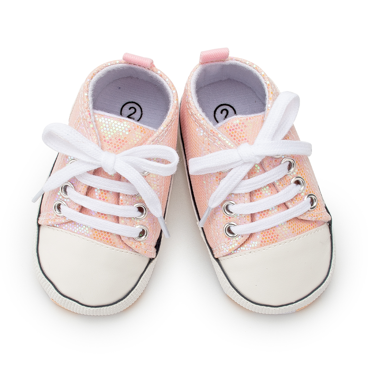 Rosa damskor med paljetter och vita skosnören