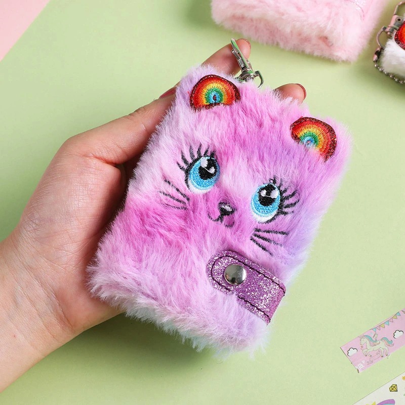 Anteckningsbok med plyschkatt för flickor i moderiktiga färger