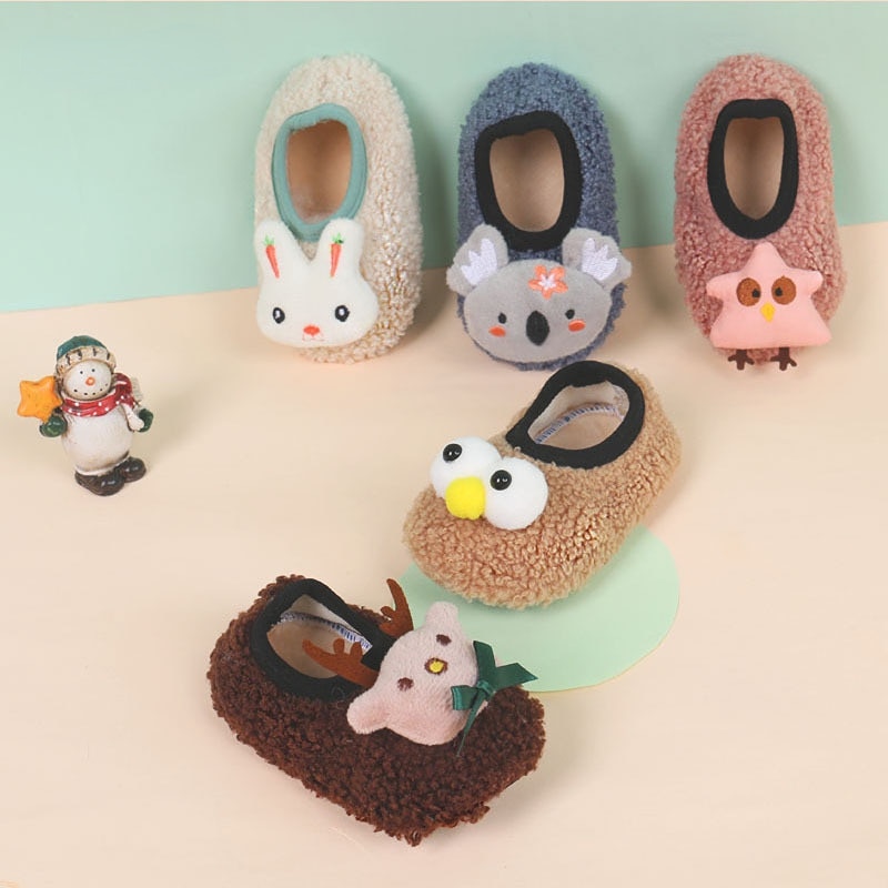Mjuka vintertofflor med djurmönster för bebisar