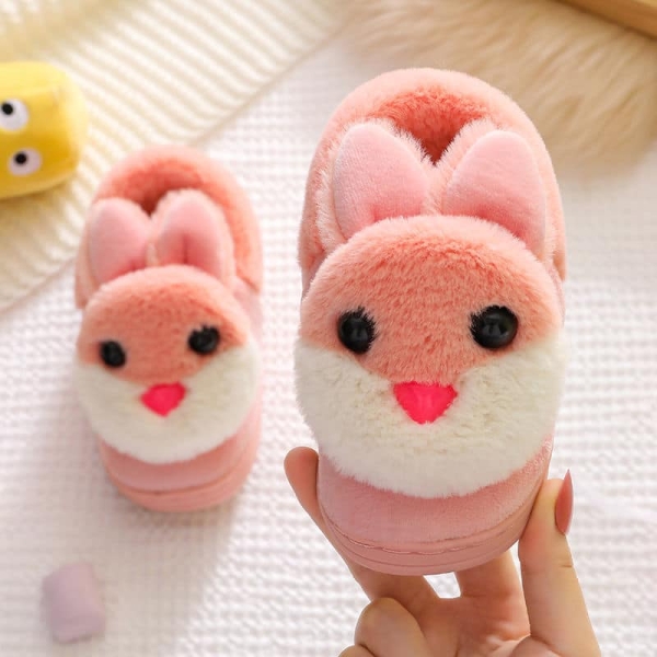 Tofflor med kanindesign för flickor på en matta