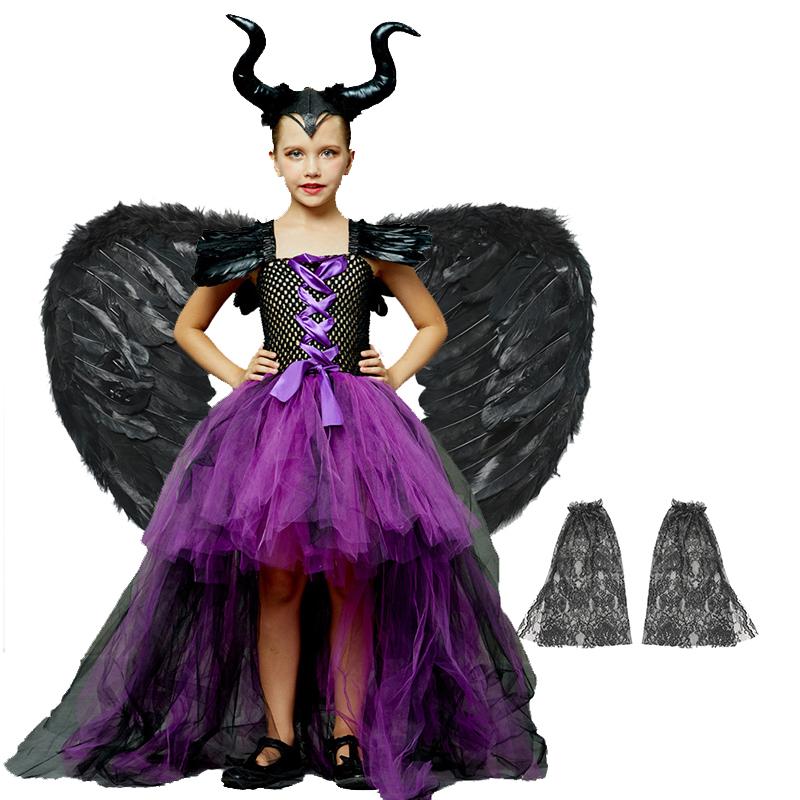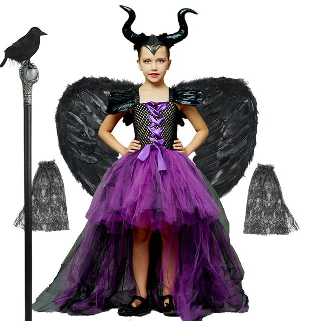 Maléfique svart och lila förklädnad för flickor
