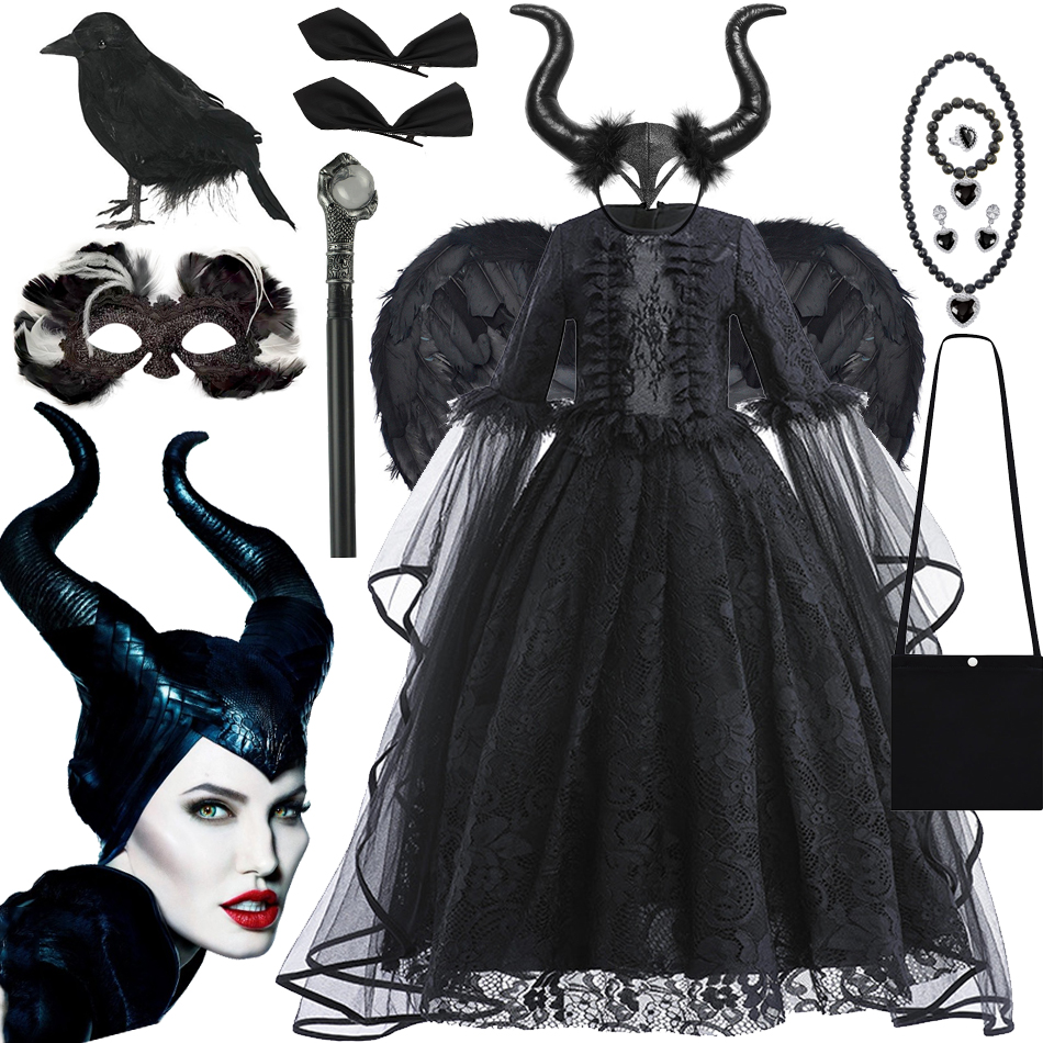 Maléfique svart och lila förklädnad för flickor